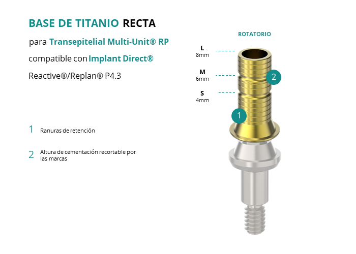 Base de Titanio Recta para Transepitelial Multi-Unit® RP compatible con Implant Direct® Reactive®/Replan® P4.3