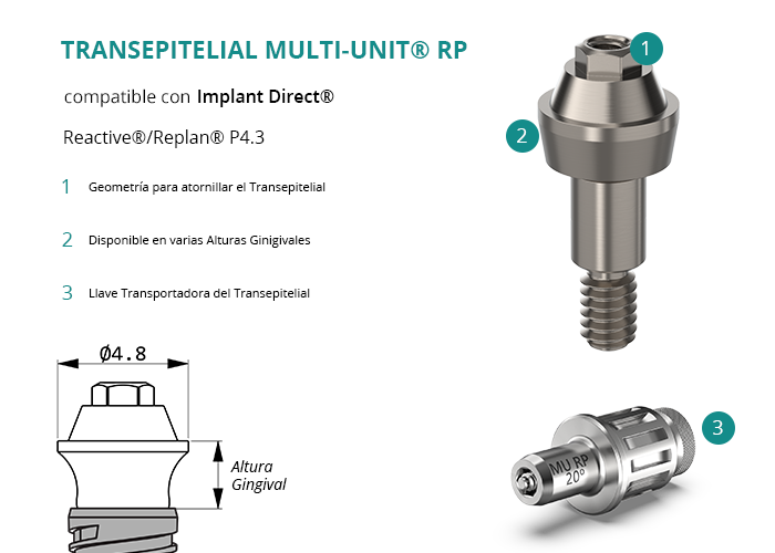 Transepitelial Multi-Unit® RP compatible con Implant Direct® Reactive®/Replan® P4.3