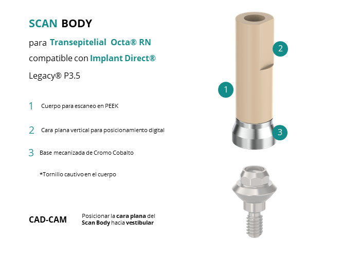 Scan Body para Transepitelial Octa® RN compatible con Implant Direct® Legacy® P3.5