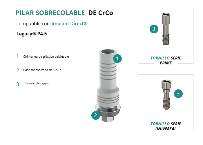 Pilar Sobrecolable de CrCo compatible con Implant Direct® Legacy® P4.5