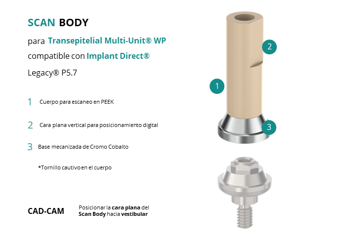 Scan Body para Transepitelial Multi-Unit® WP compatible con Implant Direct® Legacy® P5.7