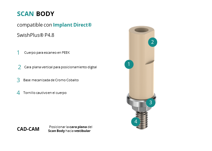 Scan Body compatible con Implant Direct® SwishPlus® P4.8
