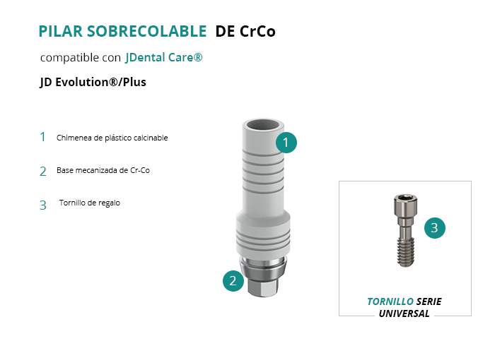 Pilar Sobrecolable de CrCo compatible con JDental Care® JD Evolution®/Plus