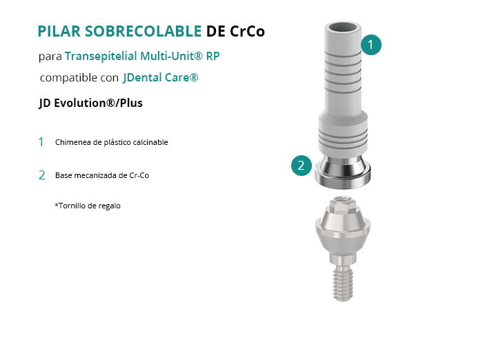 Pilar Sobrecolable de CrCo para Transepitelial Multi-Unit® RP compatible con JDental Care® JD Evolution®/Plus