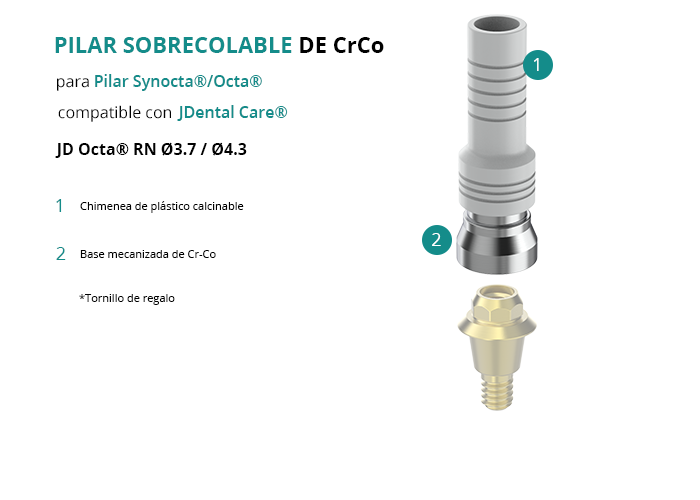 Pilar Sobrecolable de CrCo para Pilar Synocta®/Octa® compatible con JDental Care® JD Octa® RN Ø3.7 / Ø4.3