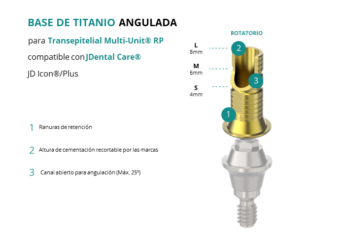Base de Titanio Angulada para Transepitelial Multi-Unit® RP compatible con JDental Care® JD Icon®/Plus