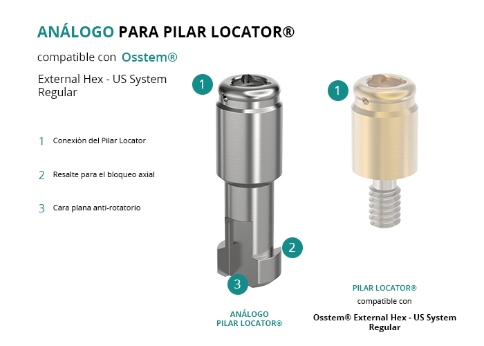 El análogo para Pilar Locator® es fundamental para crear el modelo de una restauración de sobredentadura removible que utilice pilares Locator® sobre implantes, como por ejemplo los de Osstem® de plataforma External Hex - US System Regular.