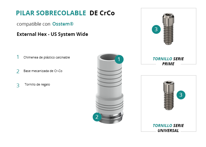 Pilar Sobrecolable de CrCo compatible con Osstem® External Hex - US System Wide