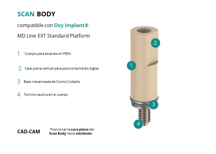 Scan Body compatible con Oxy Implant® MD Line EXT Standard Platform