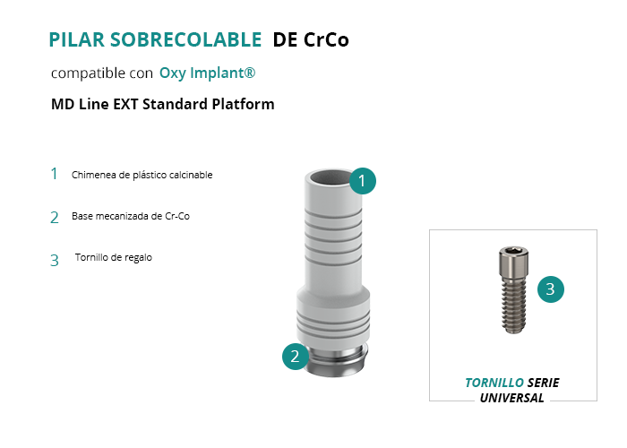 Pilar Sobrecolable de CrCo compatible con Oxy Implant® MD Line EXT Standard Platform
