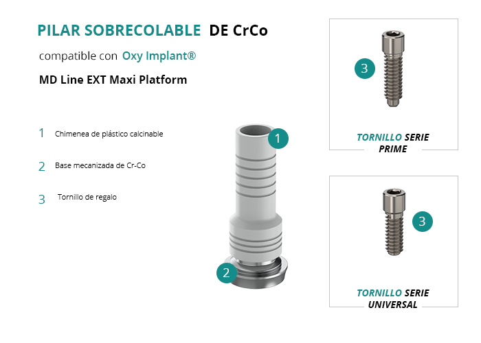 Pilar Sobrecolable de CrCo compatible con Oxy Implant® MD Line EXT Maxi Platform