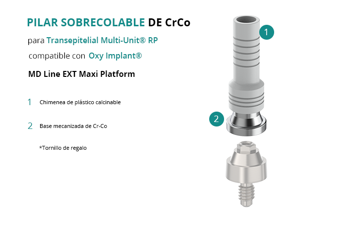 Pilar Sobrecolable de CrCo para Transepitelial Multi-Unit® RP compatible con Oxy Implant® MD Line EXT Maxi Platform