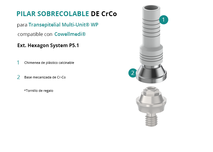 Pilar Sobrecolable de CrCo para Transepitelial Multi-Unit® WP compatible con Cowellmedi® Ext. Hexagon System P5.1