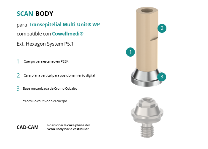 Scan Body para Transepitelial Multi-Unit® WP compatible con Cowellmedi® Ext. Hexagon System P5.1