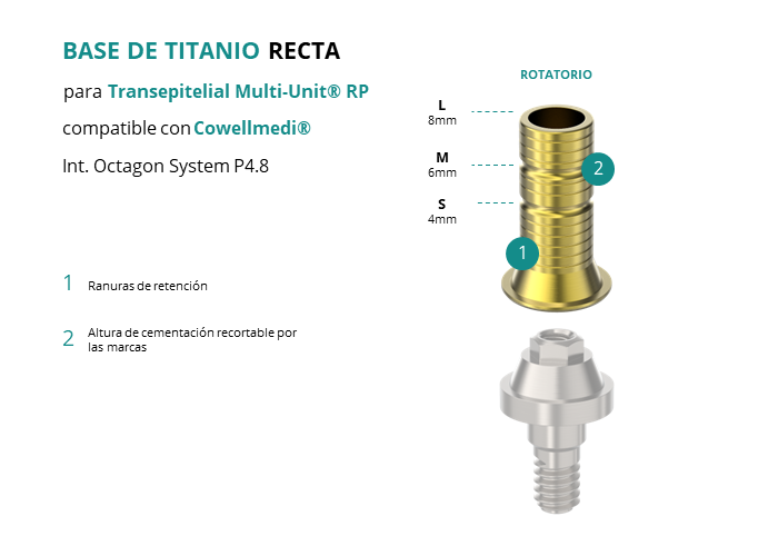 Base de Titanio Recta para Transepitelial Multi-Unit® RP compatible con Cowellmedi® Int. Octagon System P4.8