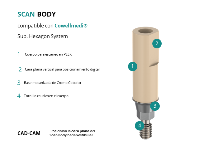 Scan Body compatible con Cowellmedi® Sub. Hexagon System