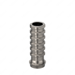 La superficie de contacto con la prótesis tiene unos anillos retentores muy pronunciados, así como dos caras planas que aseguran la anti-rotación.