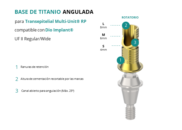 Base de Titanio Angulada para Transepitelial Multi-Unit® RP compatible con Dio Implant® UF II Regular/Wide