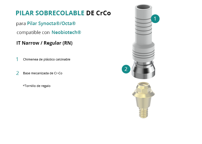 Pilar Sobrecolable de CrCo para Pilar Synocta®/Octa® compatible con Neobiotech® IT Narrow / Regular (RN)