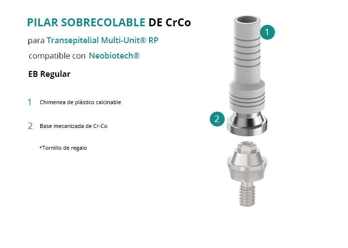 Pilar Sobrecolable de CrCo para Transepitelial Multi-Unit® RP compatible con Neobiotech® EB Regular