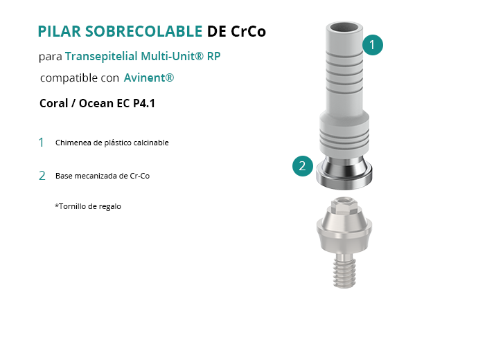 Pilar Sobrecolable de CrCo para Transepitelial Multi-Unit® RP compatible con Avinent® Coral / Ocean EC P4.1