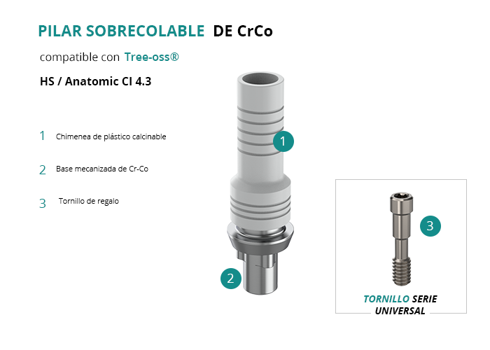 Pilar Sobrecolable de CrCo compatible con Tree-oss® HS / Anatomic CI 4.3