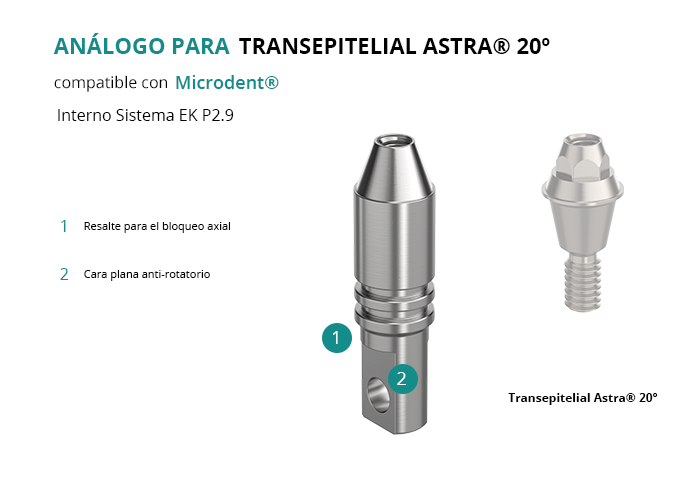 Análogo para Transepitelial Astra® 20º Compatible con Microdent® Interno Sistema EK P2.9