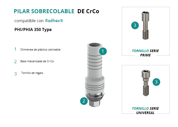 Pilar Sobrecolable de CrCo compatible con Radhex® PHI/PHIA 350 Type