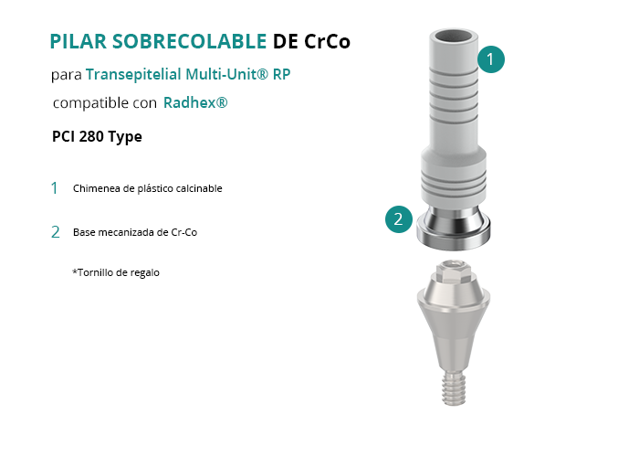Pilar Sobrecolable de CrCo para Transepitelial Multi-Unit® RP compatible con Radhex® PCI 280 Type
