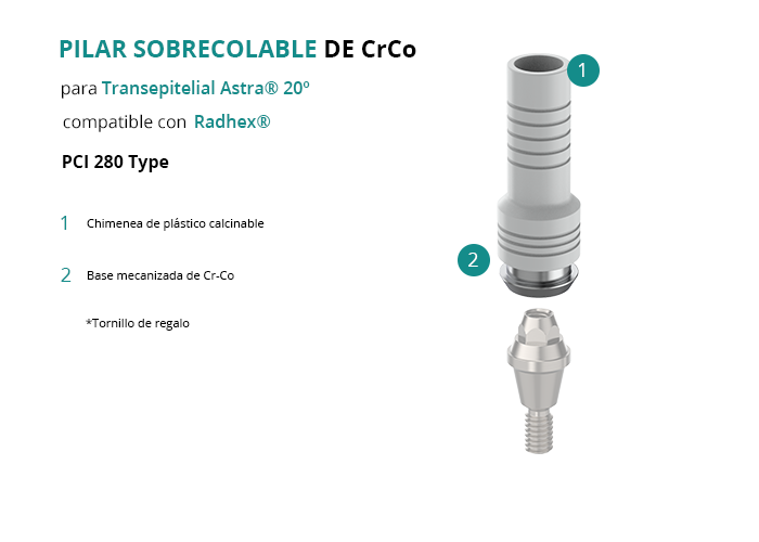 Pilar Sobrecolable de CrCo para Transepitelial Astra® 20º compatible con Radhex® PCI 280 Type